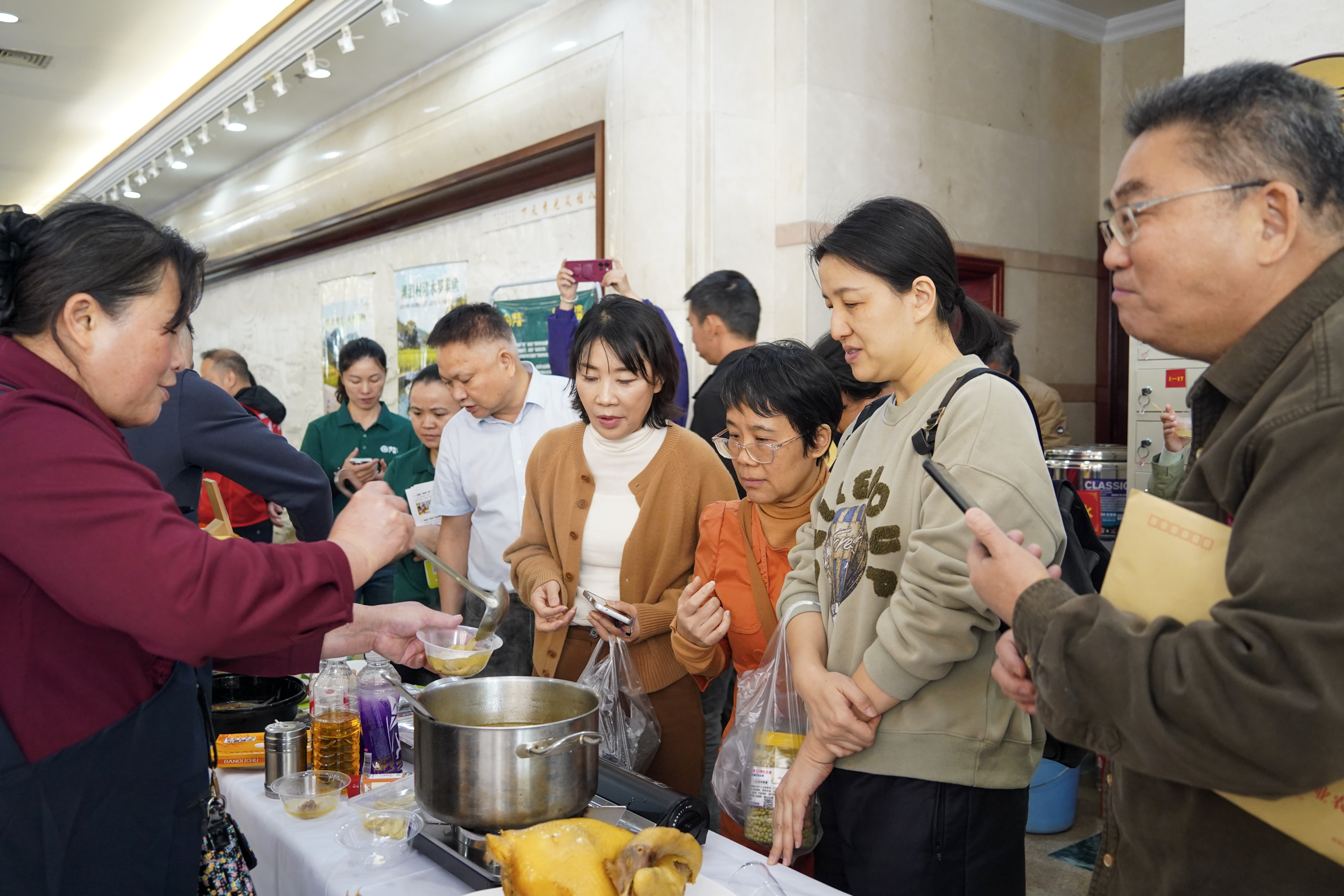 活动现场,优质粮油、生鲜果蔬、特色禽肉、生态茶叶等产品琳琅满目、香气四溢,各展区热闹非凡,大家纷纷驻足品尝、选购。展销人员、驻村第一书记热情地推介自家绍产品:“这是我们村自己种的冰淇淋紫薯,香甜软糯,非常适合冬天烤着吃!”一位机关干部品尝后当即下单:“味道真好,既买得放心,又能助力乡村振兴,一举两得。”通过面对面交流,大家不仅深入了解产品背后的故事,也增强了对帮扶产品的信任与认可,不少单位还现场达成采购意向。