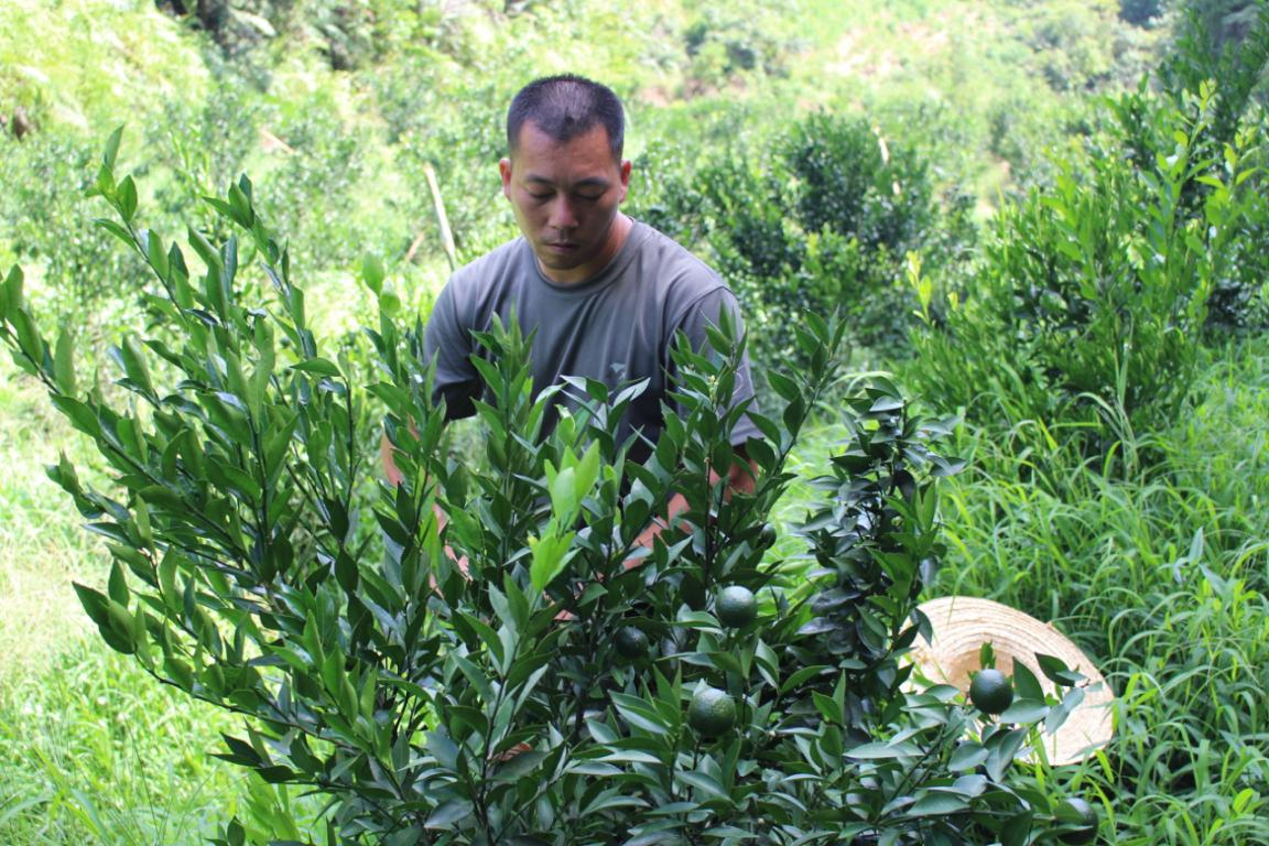 农户查看小青柑长势