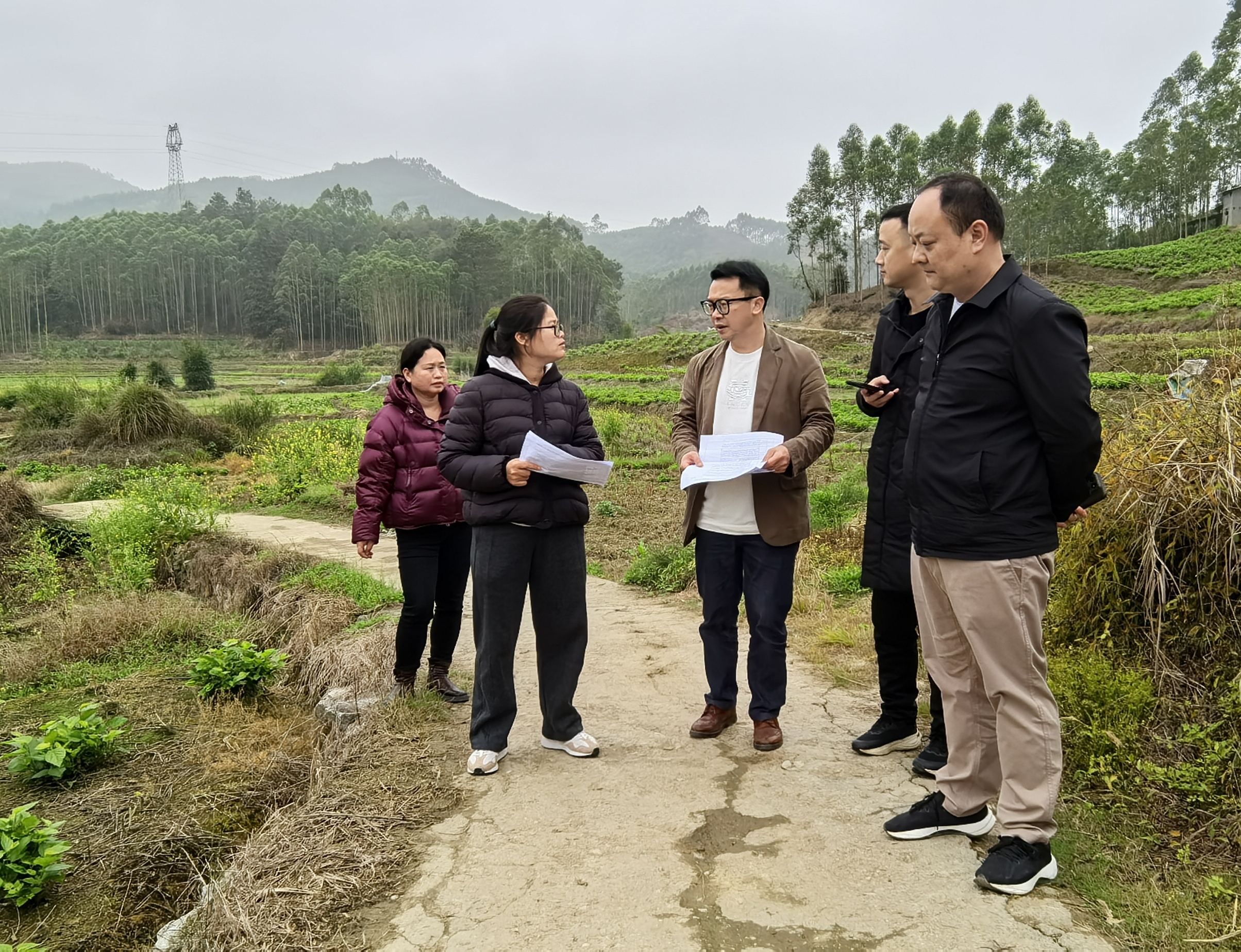 核查组在思恩镇对代表提交建议的可行性、必要性进行现场核实(蒙唯榕/摄)