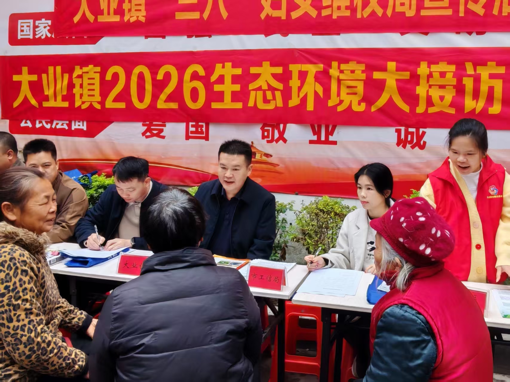 为破解群众身边的生态痛点,大业镇人大、政府及有关部门,在3月定期开展生态环境大接访活动。人大代表与相关部门负责人坐班接访,面对面倾听群众关于大气污染、水污染、噪声污染等方面的诉求和意见建议。